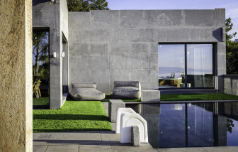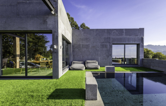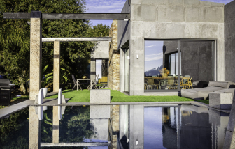 Villa contemporánea de granito con piscina climatizada y vistas al mar, Galicia