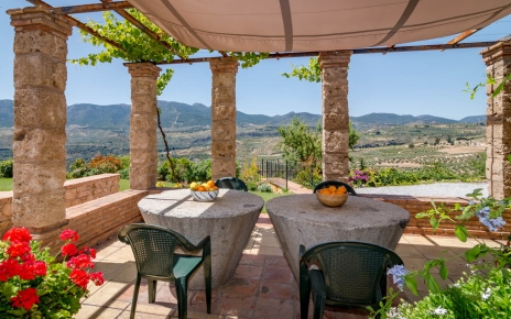 + Leer másFrom the first glimpse of El Maestro from the winding track you know it’s a special place. Surrounded by mountain ranges, looking down the valley to water and local villages, it is perfectly positioned. The house is welcoming and generous, a great balance between a superb holiday villa and a family home. A wonderful variety of spaces to eat together. A fantastic cook’s heaven of a kitchen. Using the blinds and following the suggestion of closing windows to the sun helped to keep the house cool, aided by breezes blowing through. Jasmine perfumes the air, bright geraniums, bougainvillea, roses, honeysuckle, ox-eye daisies fill the garden and walkways. Being able to walk out and pick; lemons, pomegranates, kumquats, grapes, rosemary and mint was wonderful. Charming Jose was lovely quietly working away. The wildlife was spectacular, from huge eagles, falcons, dragonflies, butterflies, baby geckos, through to grasshoppers of all colours and sizes. It was difficult to leave the pool and poolside so beautifully positioned. The pool was well looked after by Miles and his daughter who ensured all was well throughout our stay. Jen was really great, readily available to help at any point. Mari Trini was such a lovely person helping Jen to change bed linen and towels but also she cooked a wonderful meal for us (9 with various allergies) eaten on the top terrace well into the night until the sky, unpolluted by light, lit up into magnificent starlight, breathtaking. Finding fault anywhere would be immediately balanced out by all the peace and joy. A word must go to those who originally had the vision and foresight on finding this place and were inspired to create such a haven. It must have taken a lot to achieve given the ease one now experiences of living there. Claramente hemos caído bajo el hechizo mágico de El Maestro!"