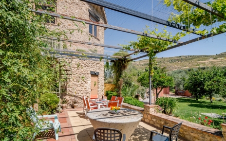 Una serie de diferentes terrazas miran en todas direcciones. Las bonitas pérgolas con sus toldos ofrecen espacios sombreados en las calurosas tardes de verano, los senderos se abren camino hacia la piscina, y las frutas de temporada cuelgan pesadas esperando ser recolectadas.