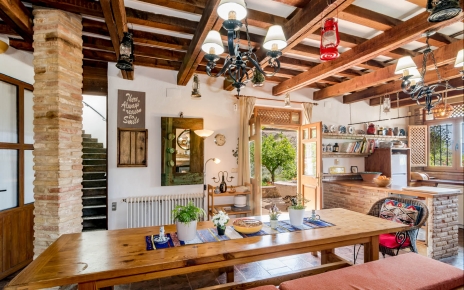 Además, la finca está llena de cálido encanto rústico. Los aficionados a la cocina seguramente se sentirán atrapidos por la amplia zona de cocina y el comedor, que son un punto central de la propiedad.
