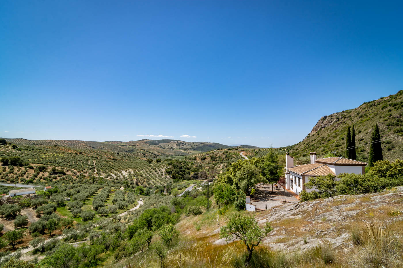 + Leer másWe stayed at El Mirador for 2 weeks in late May early June.The property can only be described as magical.Set on a ridge overlooking fields of olive trees as far as the eye could see.We loved the house and found that the ceiling fans were more than adequate in keeping the place cool with temperatures in the low 30's.The approach road can be a little challenging at first but becomes easier over time. The grounds are truly extensive with a beautiful pool in the lower garden. Our granddaughter loved collecting the eggs in the morning and releasing the doves.One highlight was seeing Mouflon [wild sheep] eating the fallen apricots from the trees.We all enjoyed eating meals on the various patio areas surrounding the property. After a slight hiccup with an earlier property we found the booking process with Rustical Travel to be first class and would have full confidence in using them again.The hosts Fernando and Alejandra were there to greet us on arrival and were extremely helpful throughout our stay.First class!!"