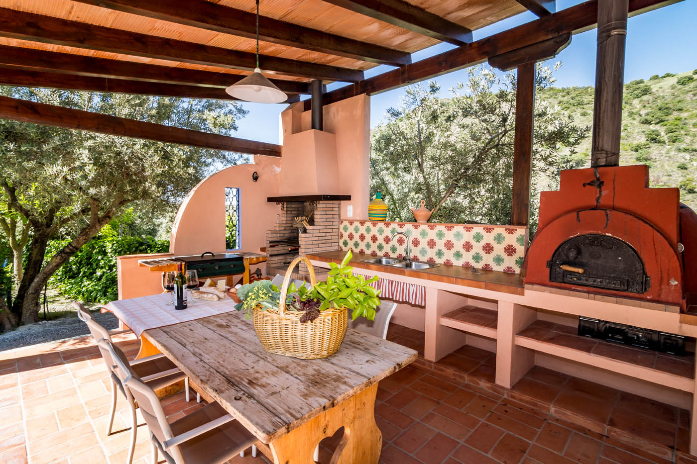 El horno en la zona de barbacoa exterior no está en uso.