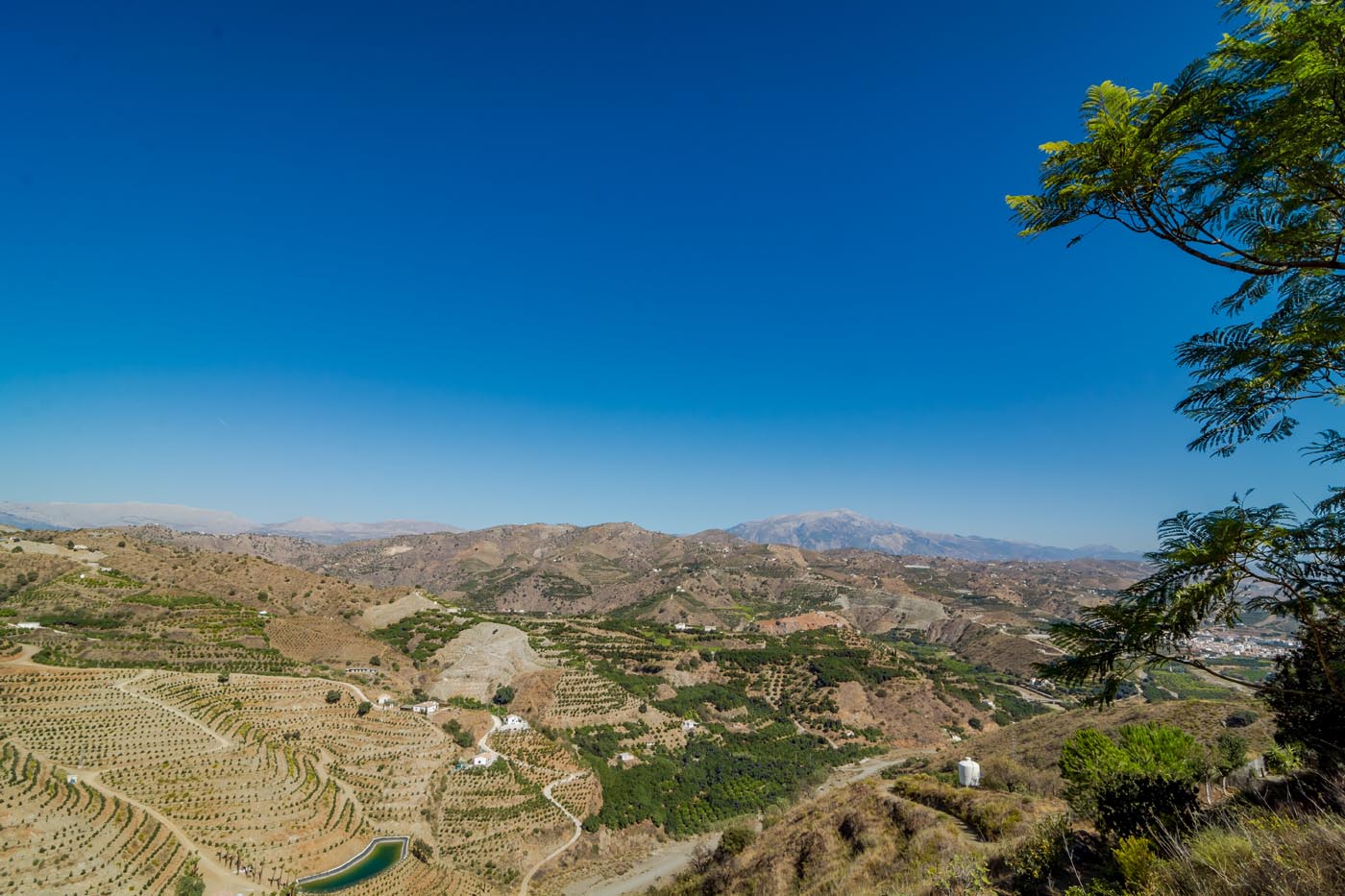 Región de la Axarquia. A 20 km de la Costa del Sol, en una zona semi tropical donde se cultiva mango, chirimoyas y aguacates. La montaña La Maroma (2.500 metros de altura) domina este valle fértil.
