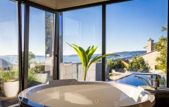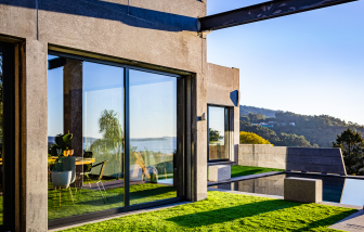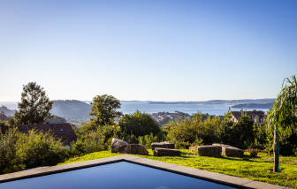 Villa contemporánea de granito con piscina climatizada y vistas al mar, Galicia