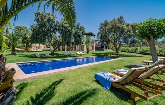 Cortijo tradicional andaluz en un parque natural con gran piscina