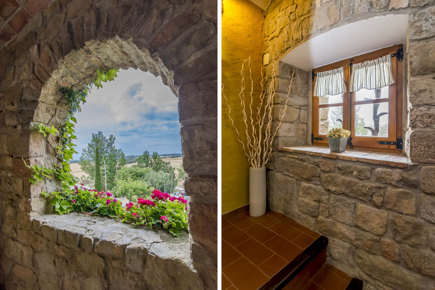Está en lo que fue una antigua masía agrícola, construida de piedra y con alegres paredes amarillas, ladrillos y vigas a la vista, pintados con cálidos colores terracota. La casa cuenta con muchos rincones mágicos distribuidos en dos plantas, con cuatro agradables dormitorios.