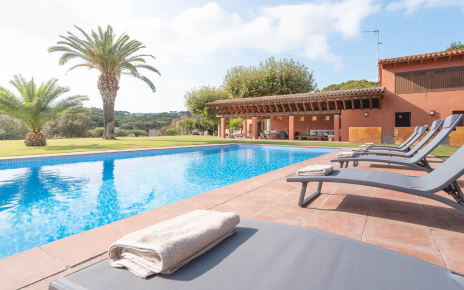 Si quieres alojarte en una masía tradicional pero con todas las comodidades de una villa moderna con altos estándares, y además, estar a 15 minutos a pie de la playa, esta opción es imbatible. Aquí podrás alternar las brazadas en tu piscina privada de 12 metros con los baños en el mar, relajarte sobre el verdor del césped de tus jardines o en la suave arena de la cercana playa de Sant Vicenç. La casa y su anexo se ofrecen con un nivel de confort y un equipamiento que deja muy poco que desear. Capacidad hasta 16 personas.
