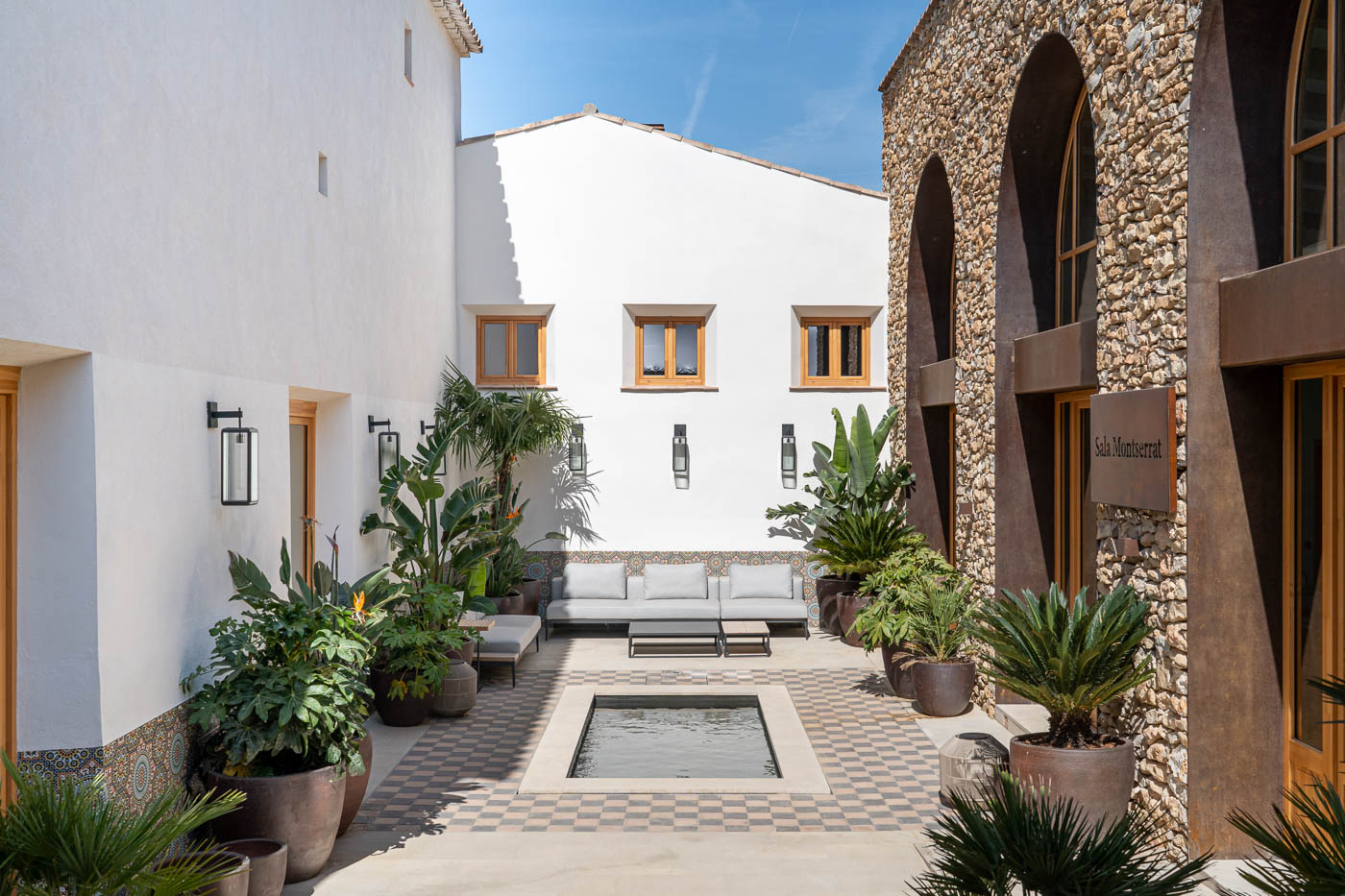Hay una segunda piscina en un patio, que recuerda a las que se encuentran en un riad marroquí, rodeada de elegantes azulejos artesanos y plantas.