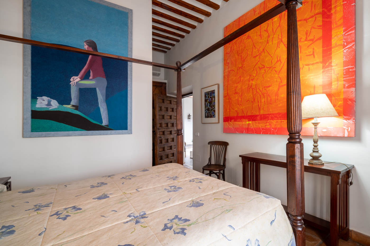 Desde éstos se accede a una habitación con dos camas y baño adaptada para sillas de rueda; y por una escalera exterior a un apartamento independiente que consiste en un estudio con dos camas de 1.35 metros, cocina y baño. Es muy agradable, decorado con algunos cuadros de arte contemporáneo.
