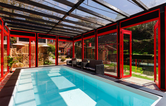 Villa con piscina interior y exterior, jardines excepcionales, junto a pueblo