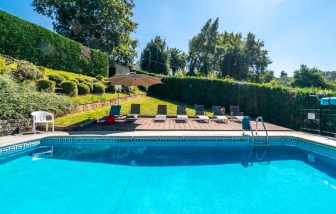 Villa con piscina interior y exterior, jardines excepcionales, junto a pueblo