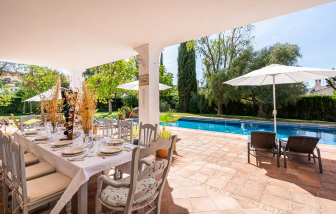 If you are looking for a large property for a gathering within walking distance of facilities and with high standards, you may consider this luxury village house. Plenty of terraces, quality bedrooms, a private pool and additional services are included in the price. Additional services are also available on request. A place to indulge in a beautiful region of Andalucia. Sleeps 16.