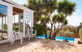 This smart villa close to the Mediterranean coast has a rural setting and trails to explore in mountains and pretty villages. Sleeps 2 to 6.