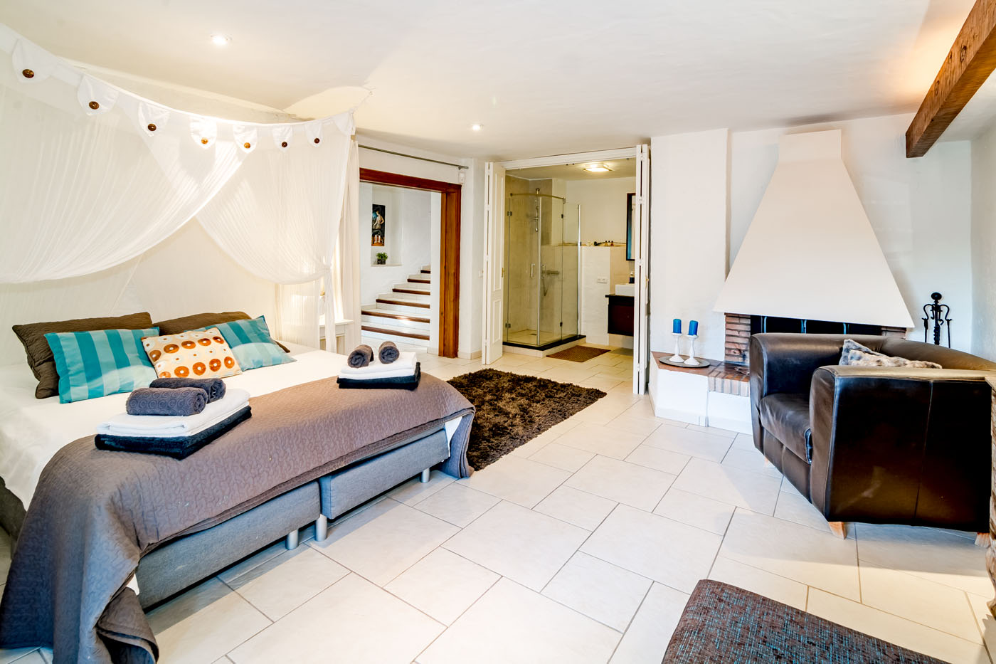 Bedroom 2: Double bedroom with private terrace, en-suite bathroom and fireplace