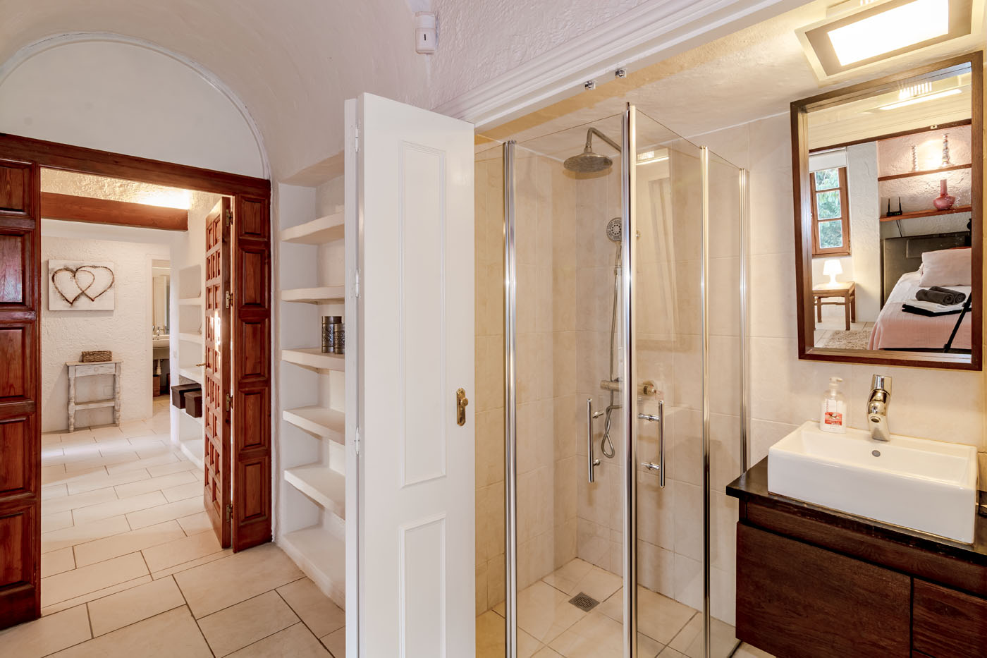 The Apartment is located on the pool level below the main villa and has its own separate entrance, but can also be accessed from inside the villa. 2 bedrooms & 2 bathrooms, it features a spacious master bedroom with en suite bath and glass door leading unto the pool garden. The studio bedroom has a kitchen, dining and living area with a spacious bathroom and washer/ dryer laundry.