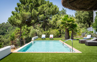 A warm Mediterranean climate and 12 acres of gardens are the setting. Spaciousness and satisfying facilities, including high-speed WiFi, do the rest. 11-metre heated pool. Beaches are an easy drive. Sleeps 15.