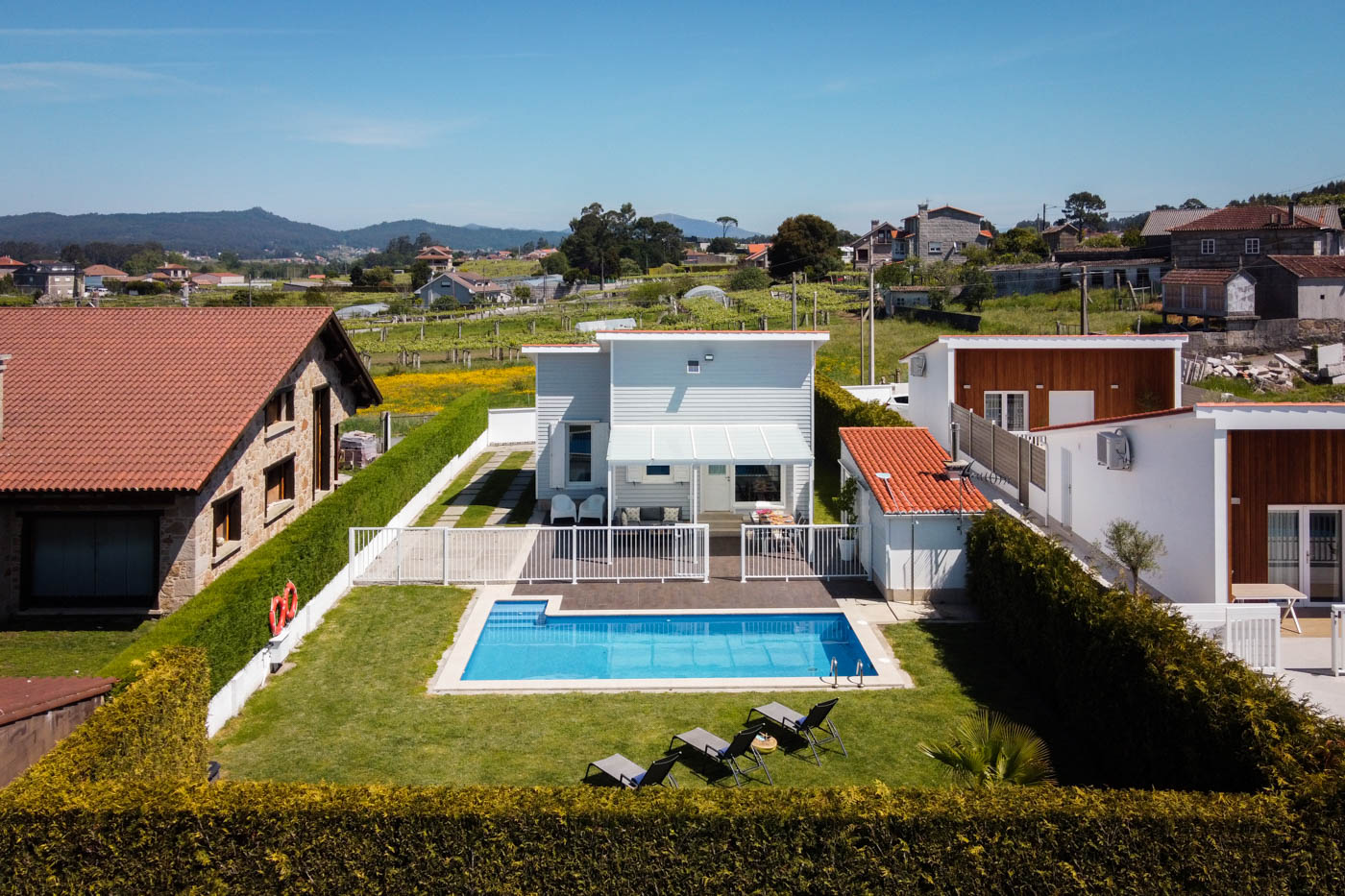 Here we are in a residential area where there are other houses around together with vineyards. Despite being less than 10 minutes from a popular tourist resource such as the fishing village of Cambados or the beaches of the Rías Baixas, there is not a touristy atmosphere here.